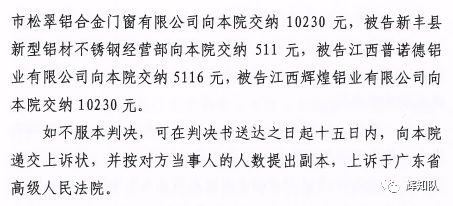 潮州凤铝系列维权案:诉辉煌公司等四被告,法院判赔250余万